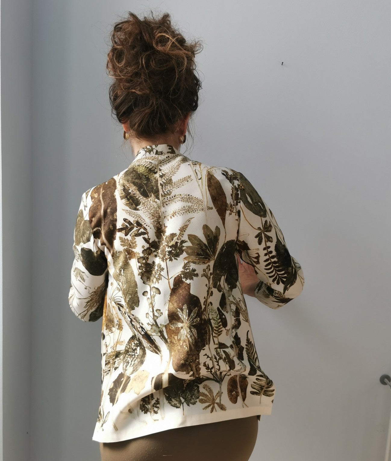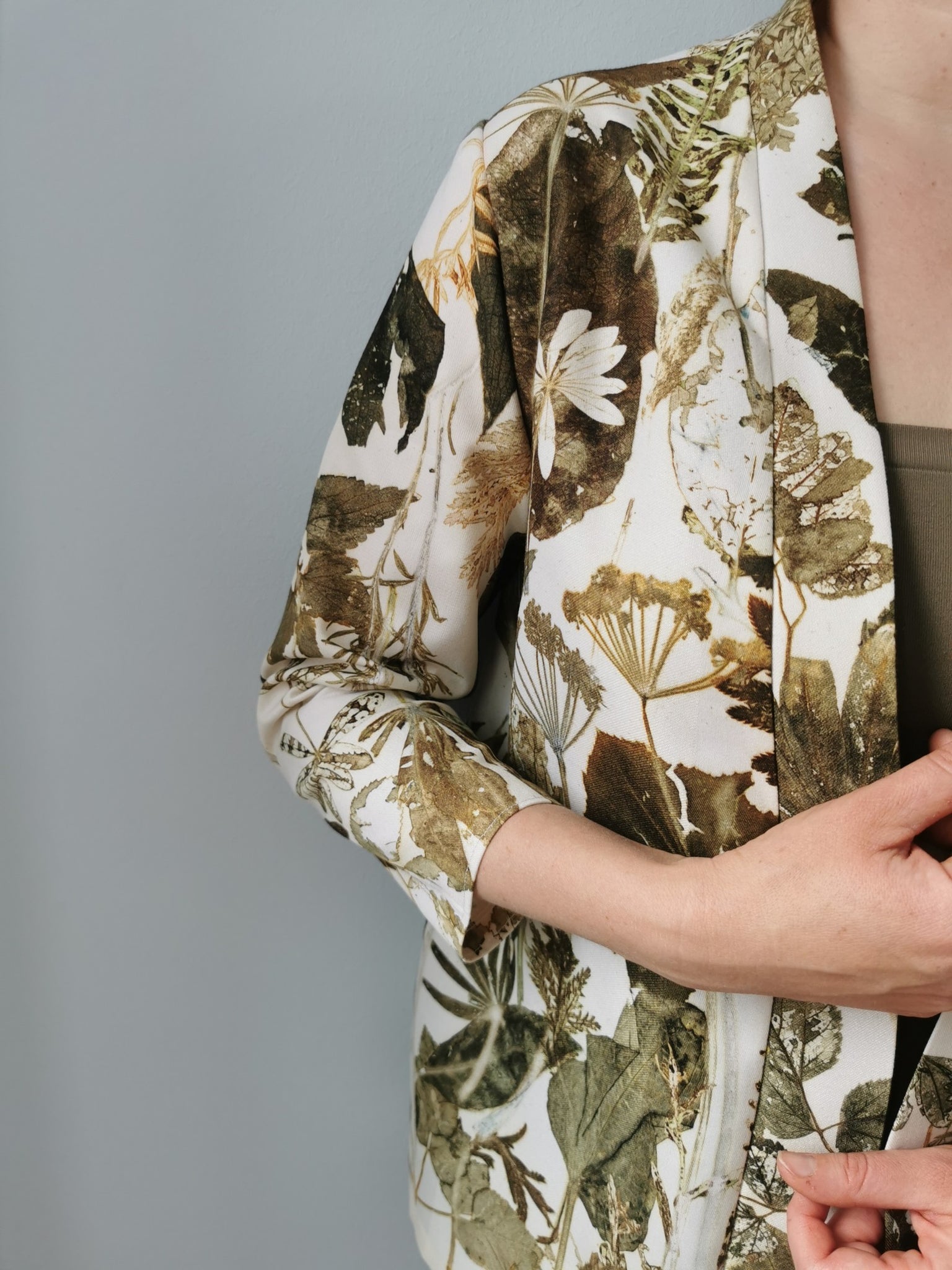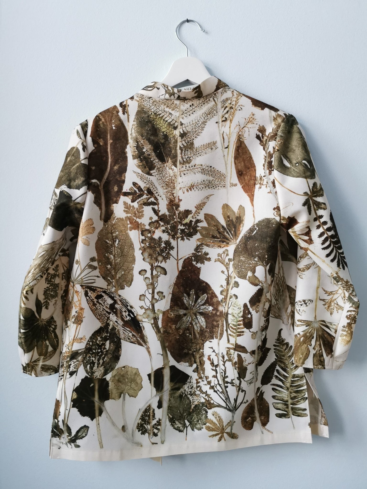 The Botanical Blazer is a sample for a collection of slow fashion that has not yet reached final production. Therefore this is the only edition with a unique monoprint, handmade with wild plants. Other samples of jackets may have small differences.