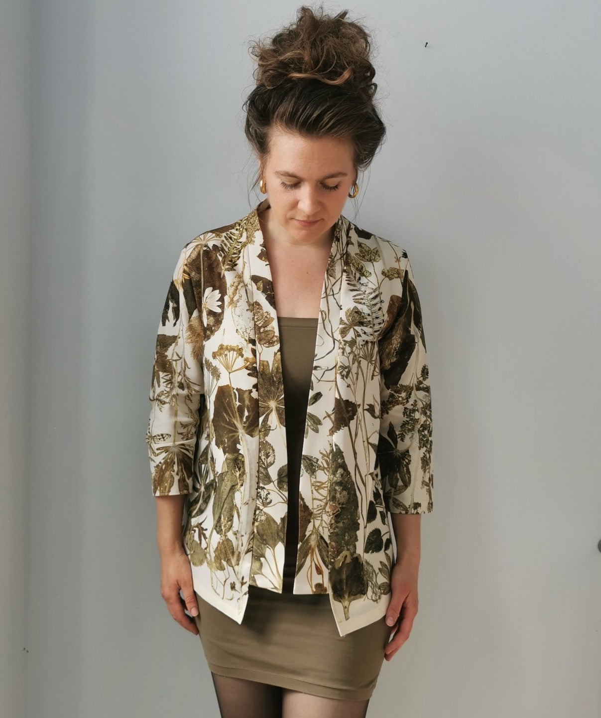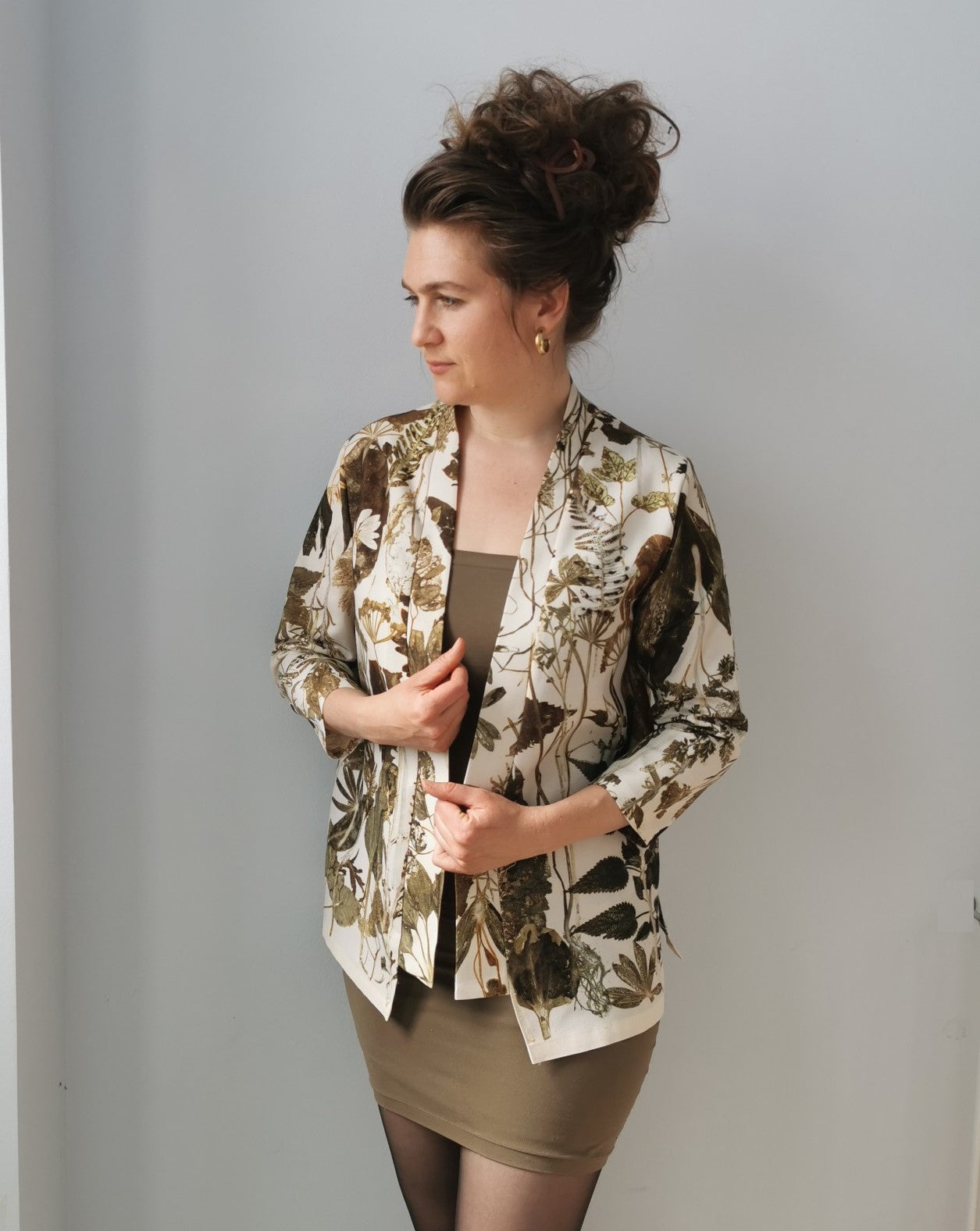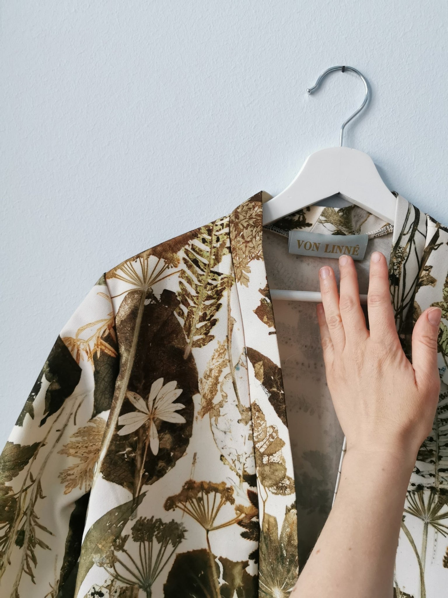 The Botanical Blazer is a sample for a collection of slow fashion that has not yet reached final production. Therefore this is the only edition with a unique monoprint, handmade with wild plants. Other samples of jackets may have small differences.