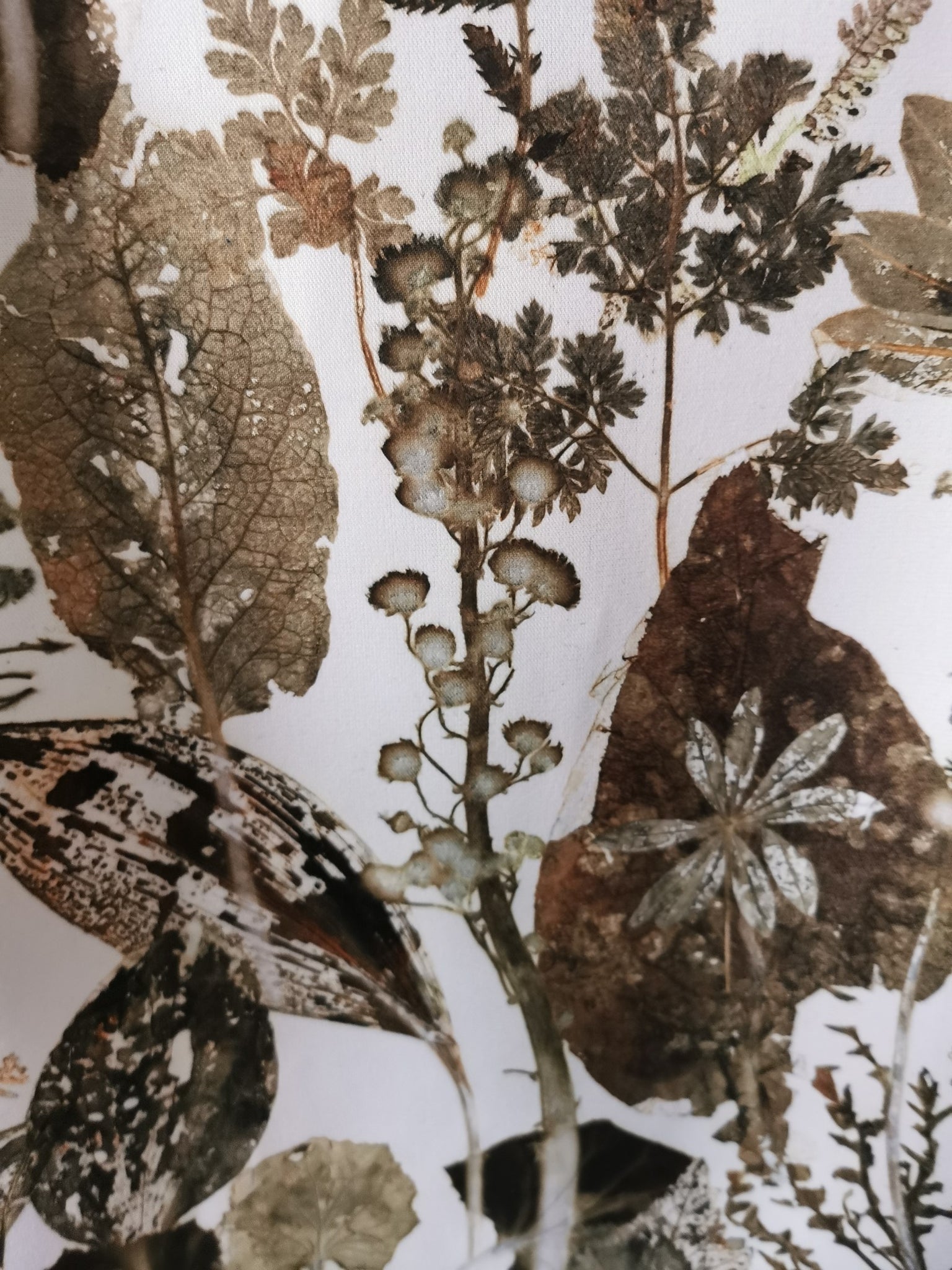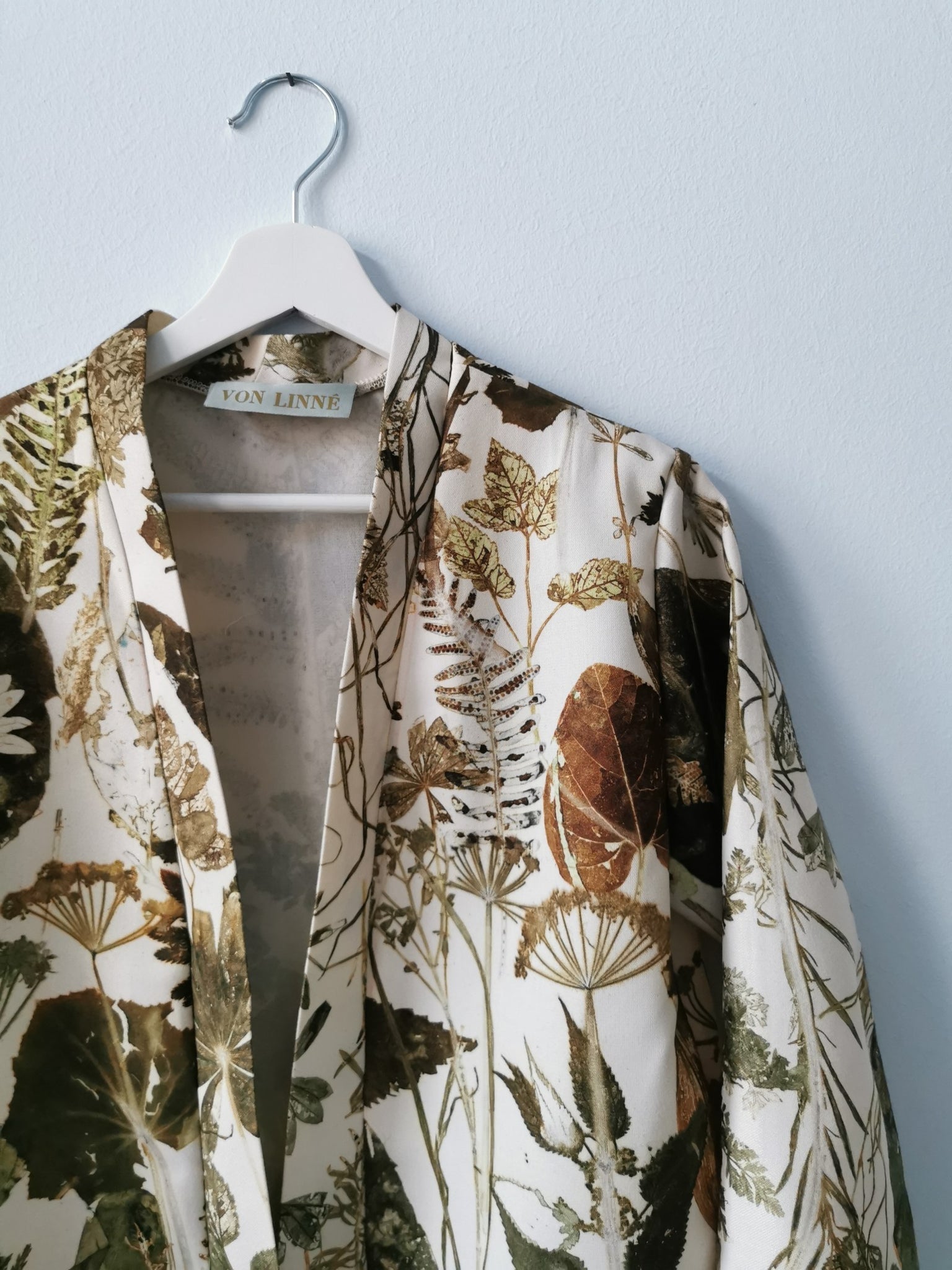 Please notice: This is a collection sample and so the sewing work is not made with perfection and is made in the mind for testing the style. Yet, is is wearable and the botanical print is made with the same quality as any other normal collection.