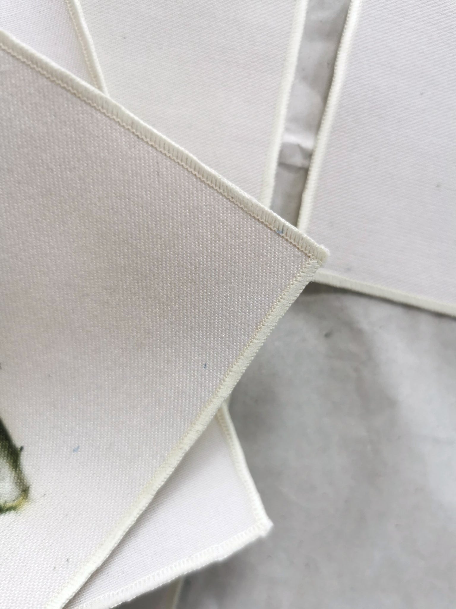 All cocktail napkins have an unique plant motif, which is handmade locally in the studio at Ulriksholm Slot near Kerteminde // Denmark; so there is exclusively one of each piece since the monoprint cannot be duplicated.