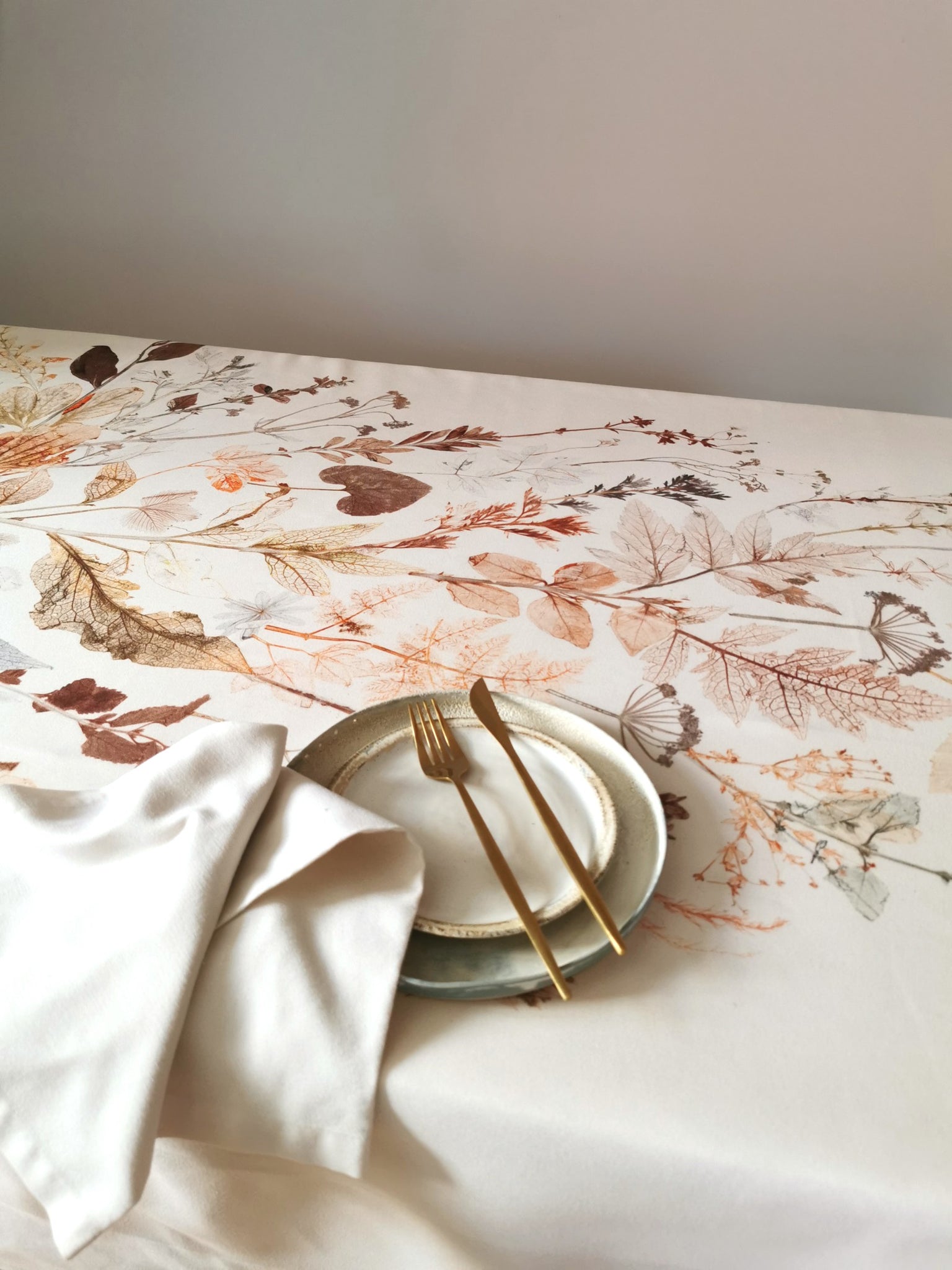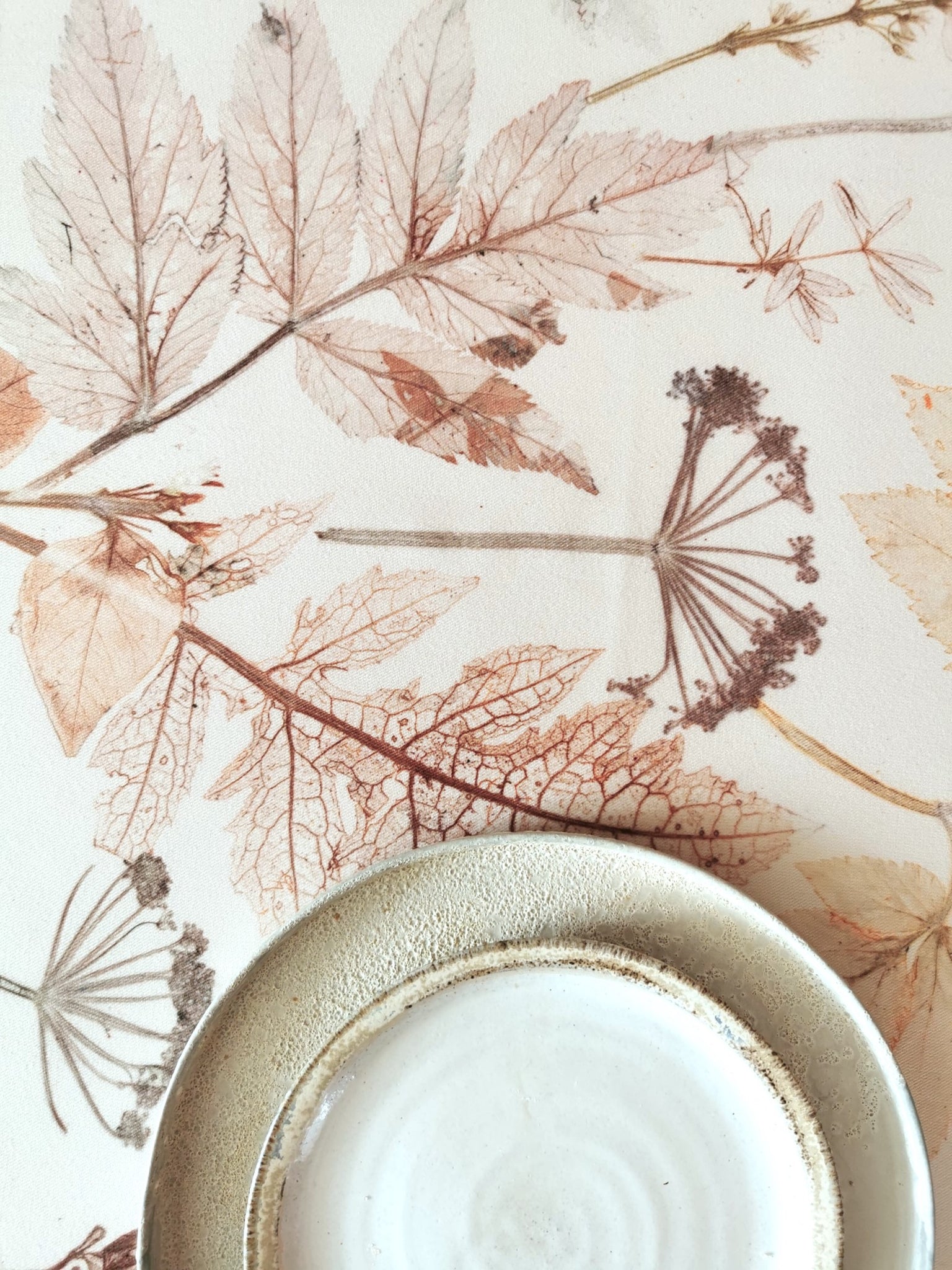All table linens have an unique plant motif, which is handmade locally in the studio at Ulriksholm Slot near Kerteminde // Denmark; so there is exclusively one of each piece since the monoprint cannot be duplicated.