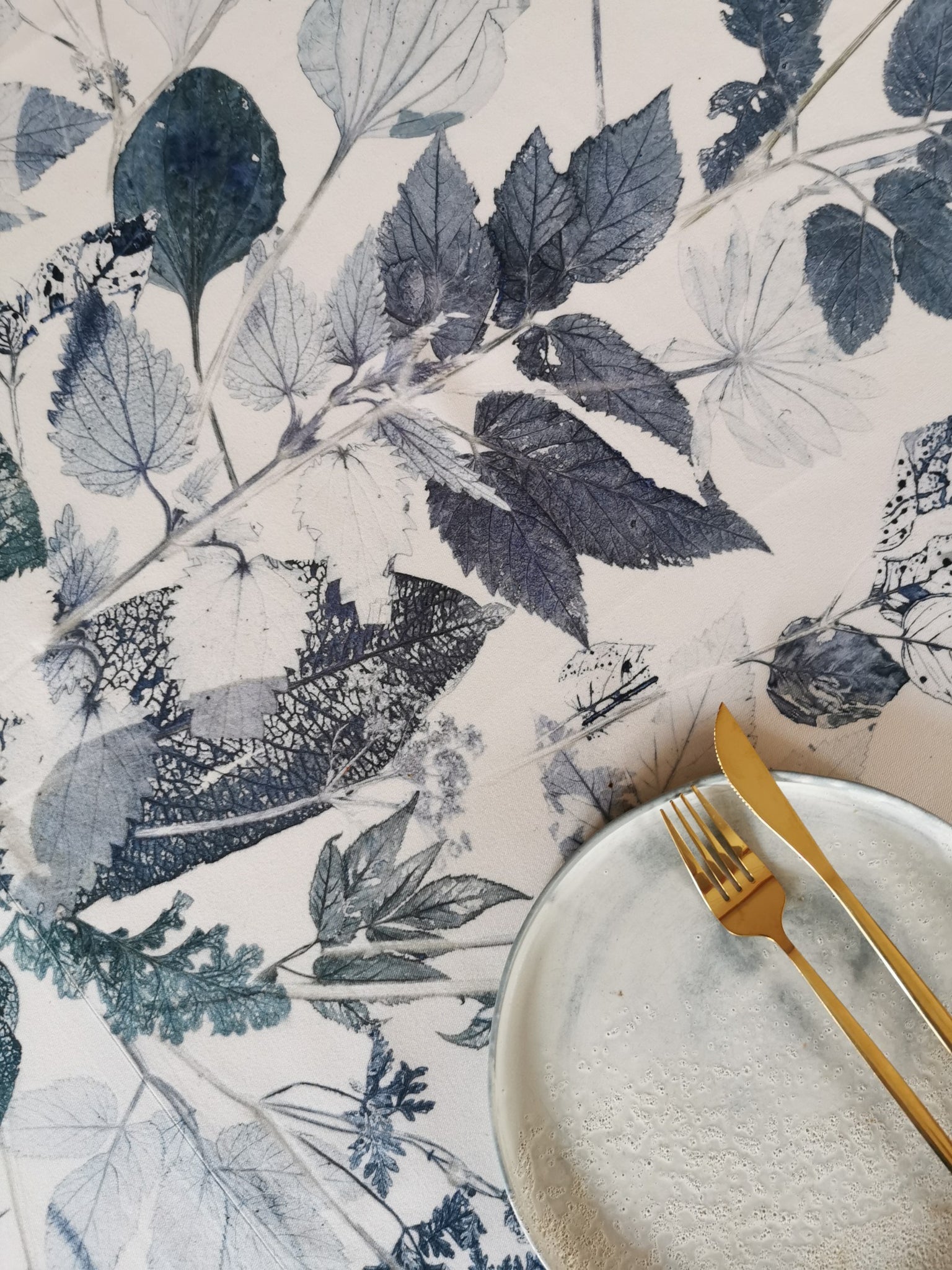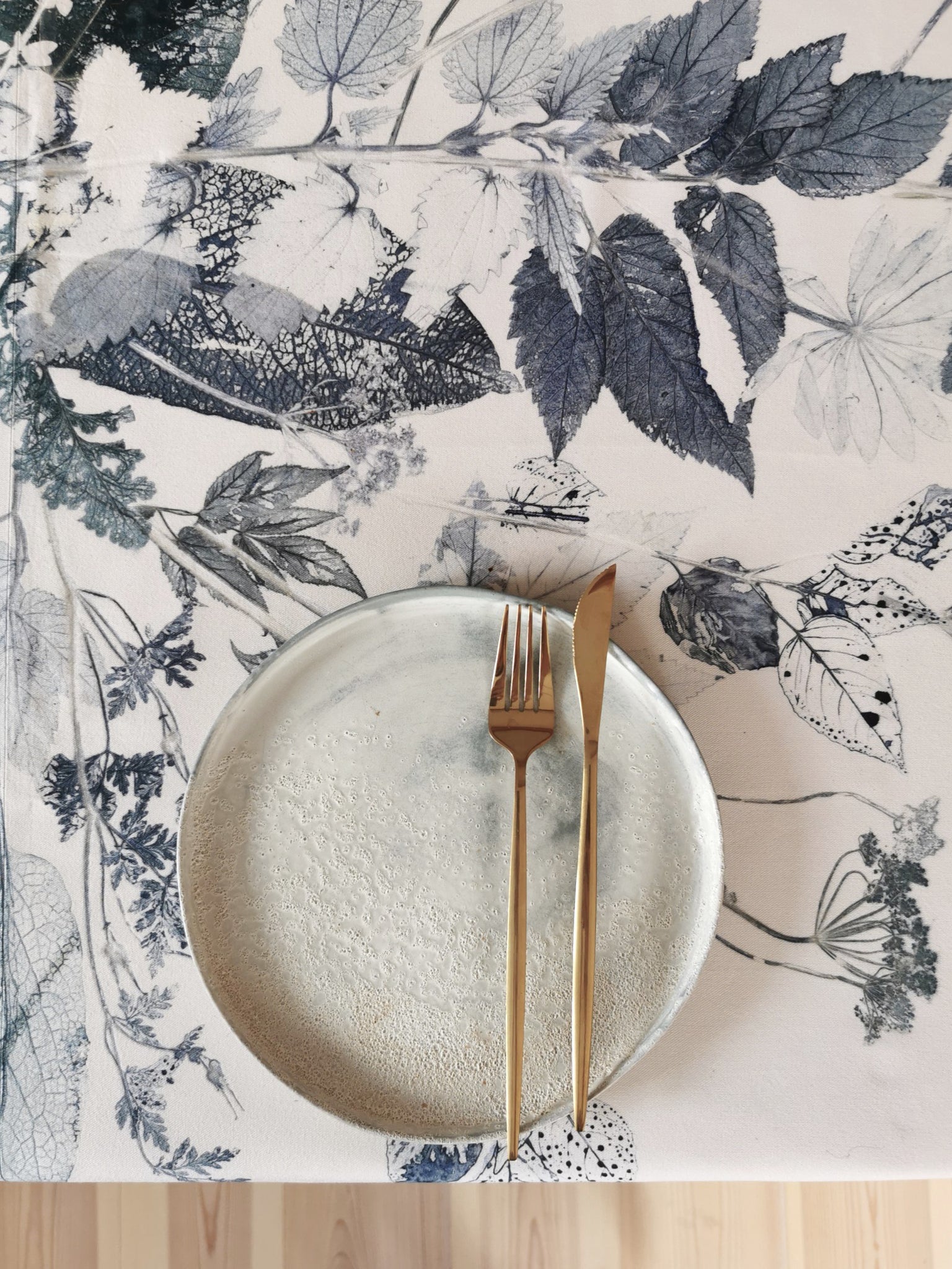 All table linens have an unique plant motif, which is handmade locally in the studio at Ulriksholm Slot near Kerteminde // Denmark; so there is exclusively one of each piece since the monoprint cannot be duplicated.