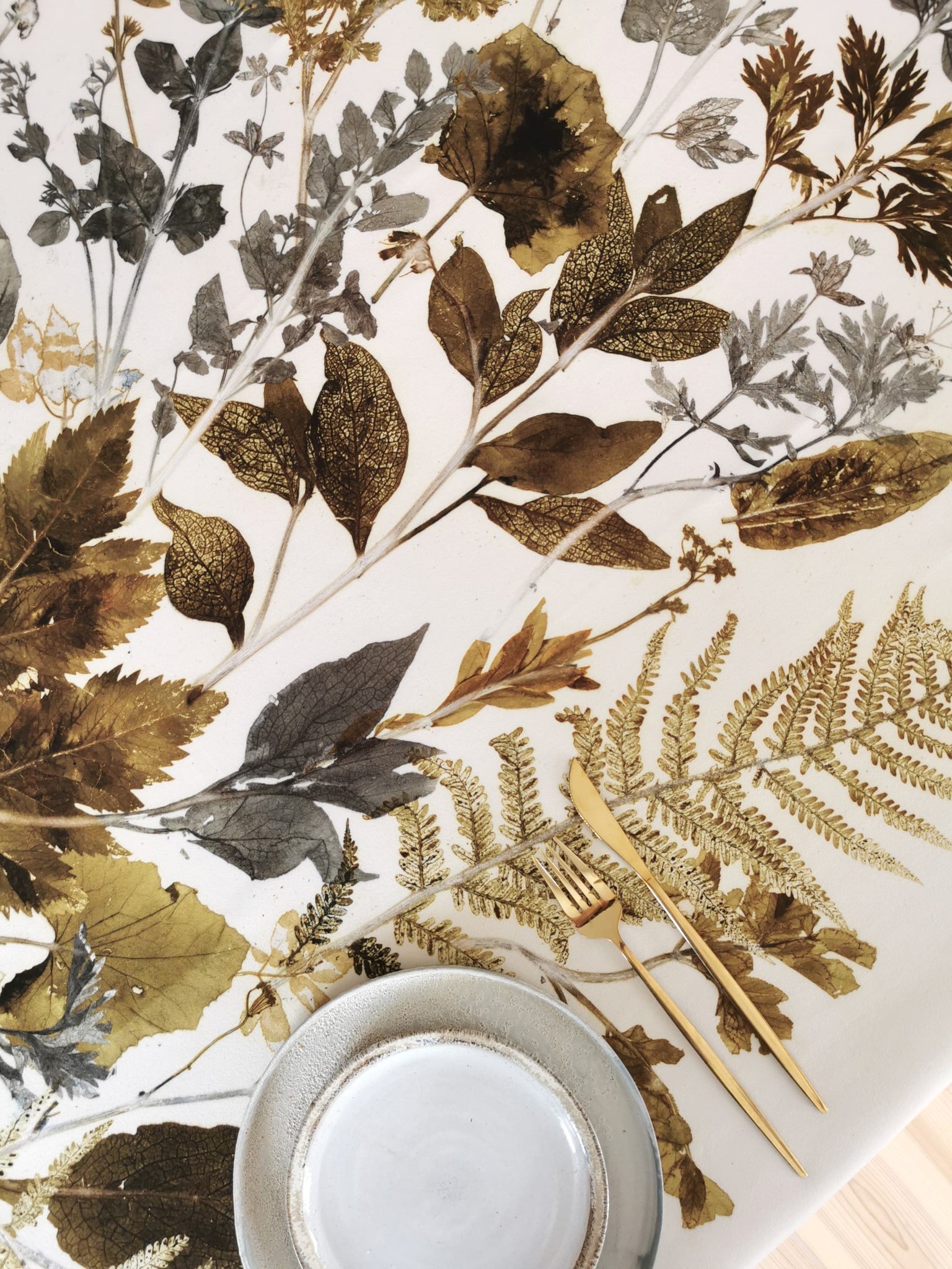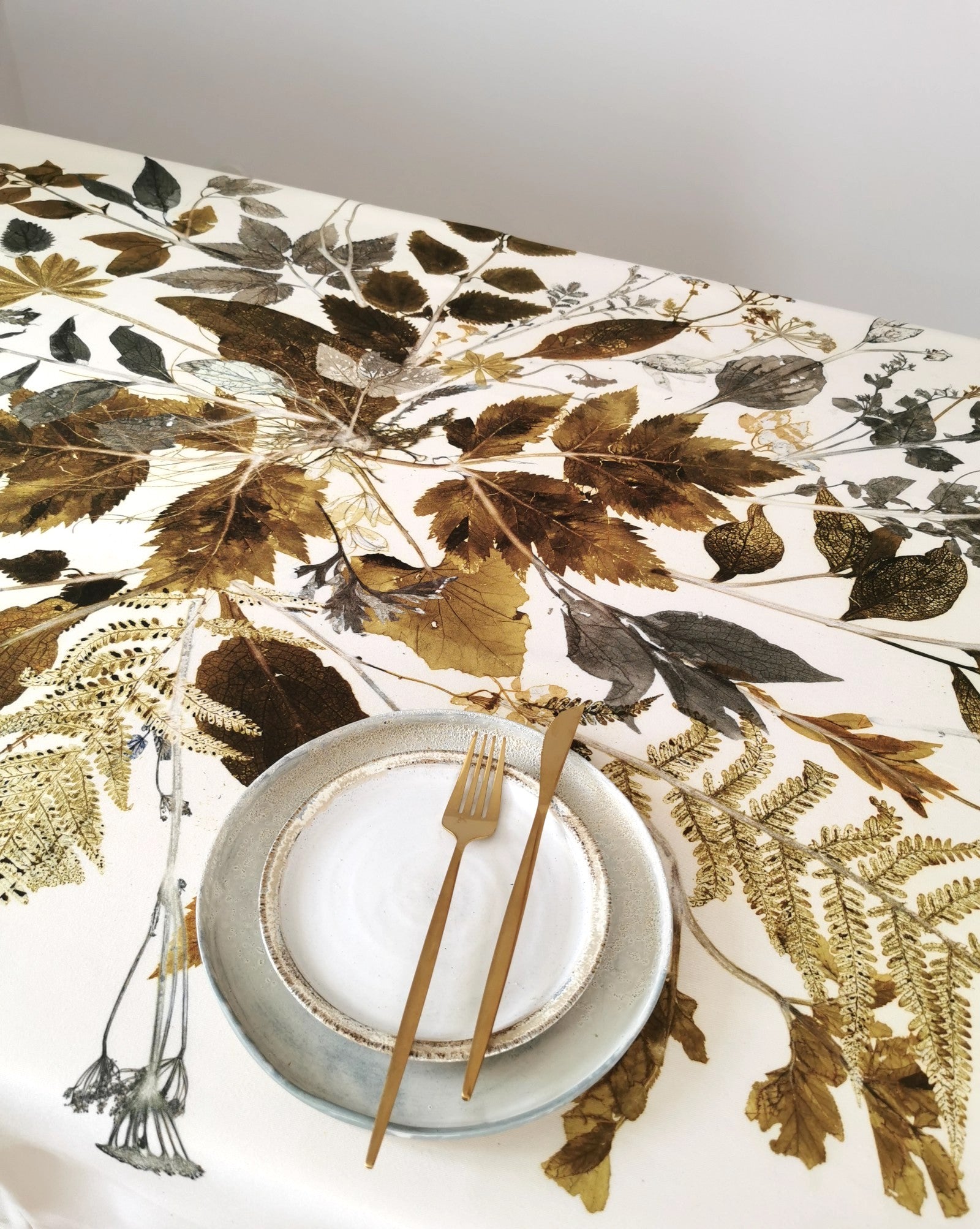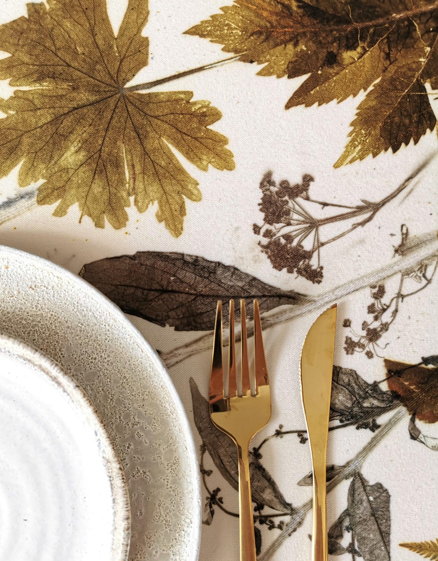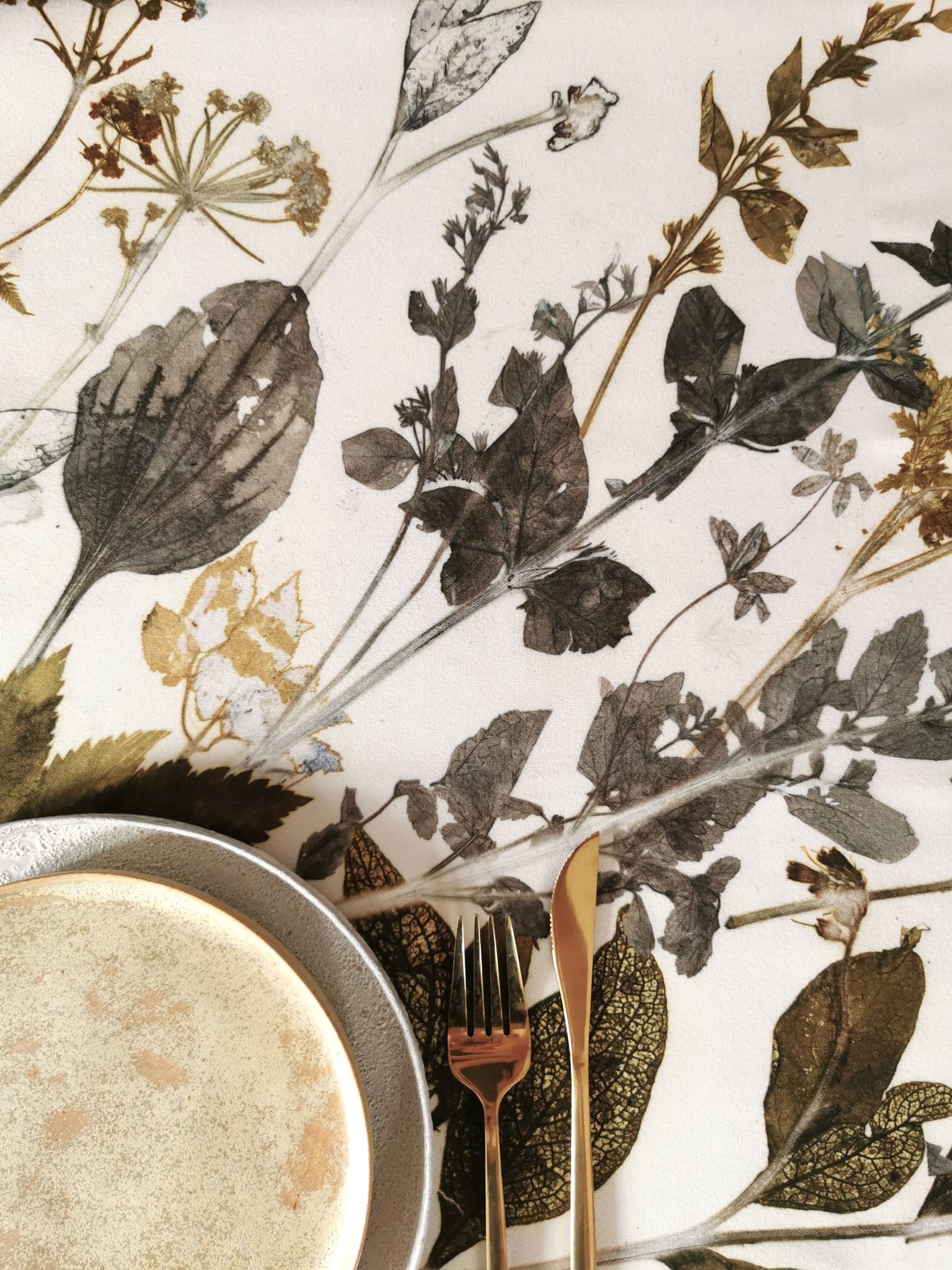 All table linens have an unique plant motif, which is handmade locally in the studio at Ulriksholm Slot near Kerteminde // Denmark; so there is exclusively one of each piece since the monoprint cannot be duplicated.