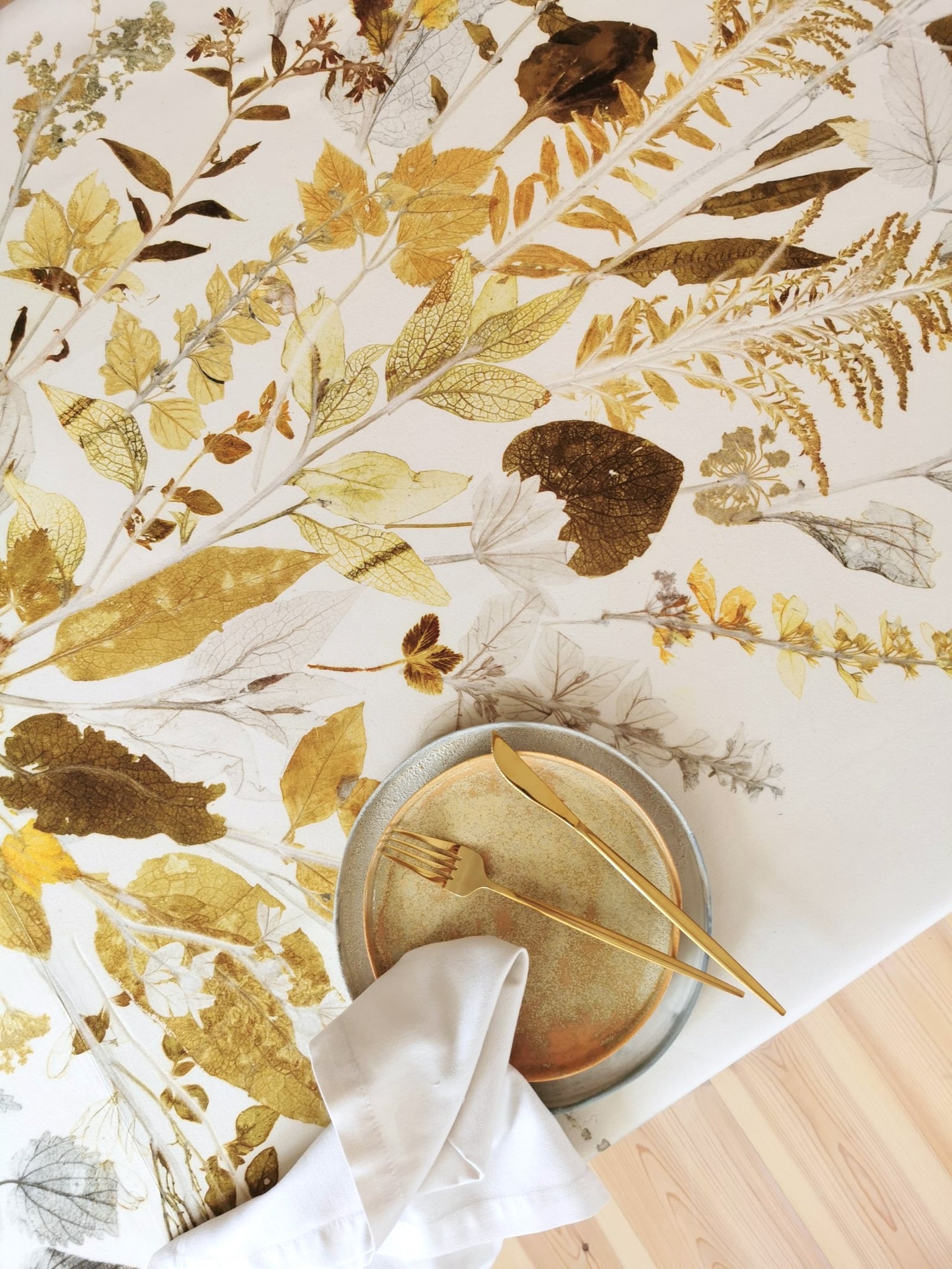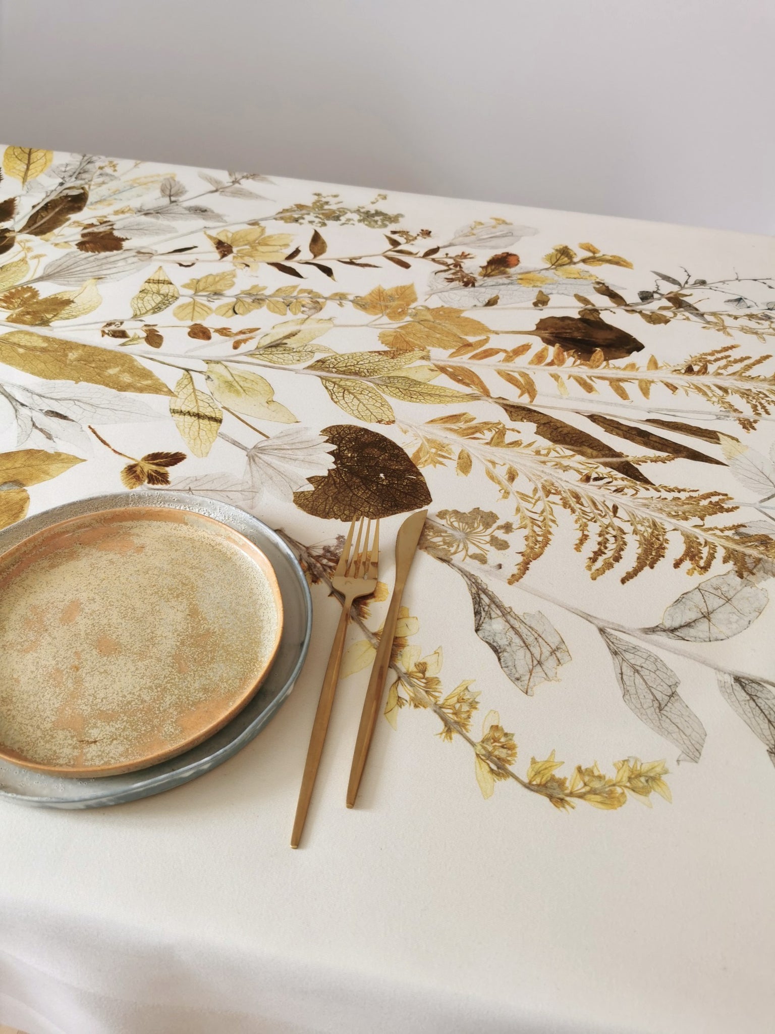 All table linens have an unique plant motif, which is handmade locally in the studio at Ulriksholm Slot near Kerteminde // Denmark; so there is exclusively one of each piece since the monoprint cannot be duplicated.
