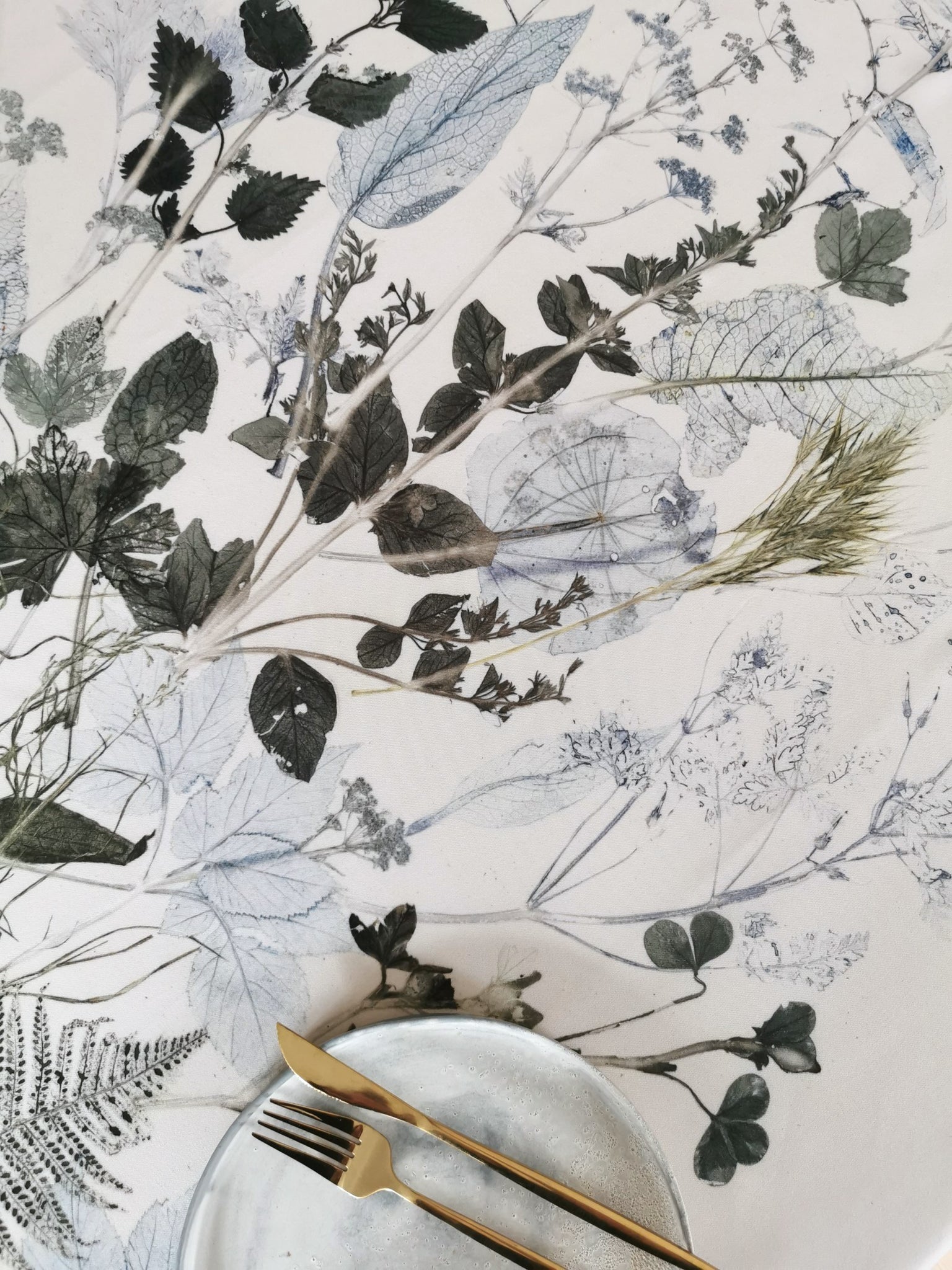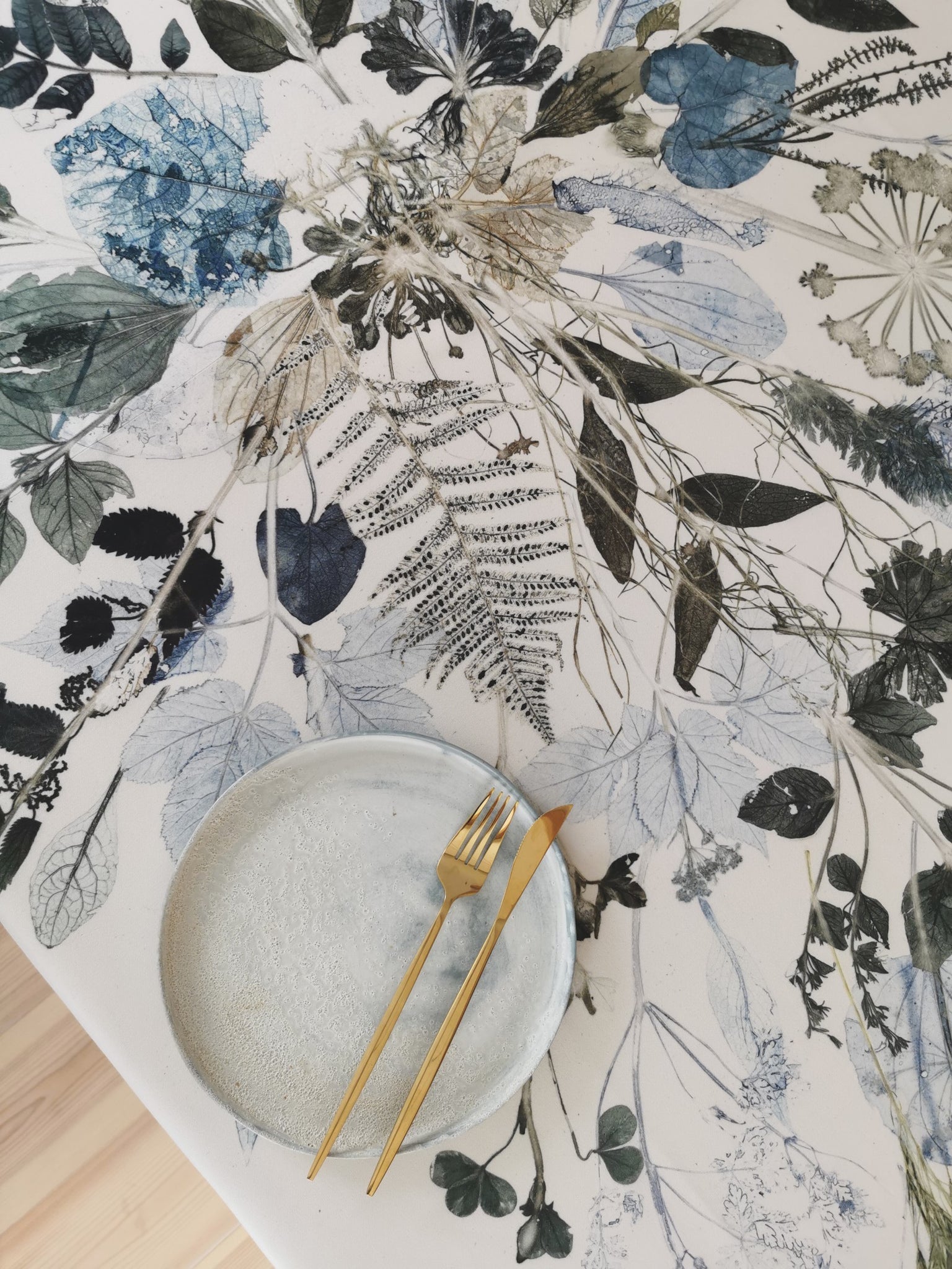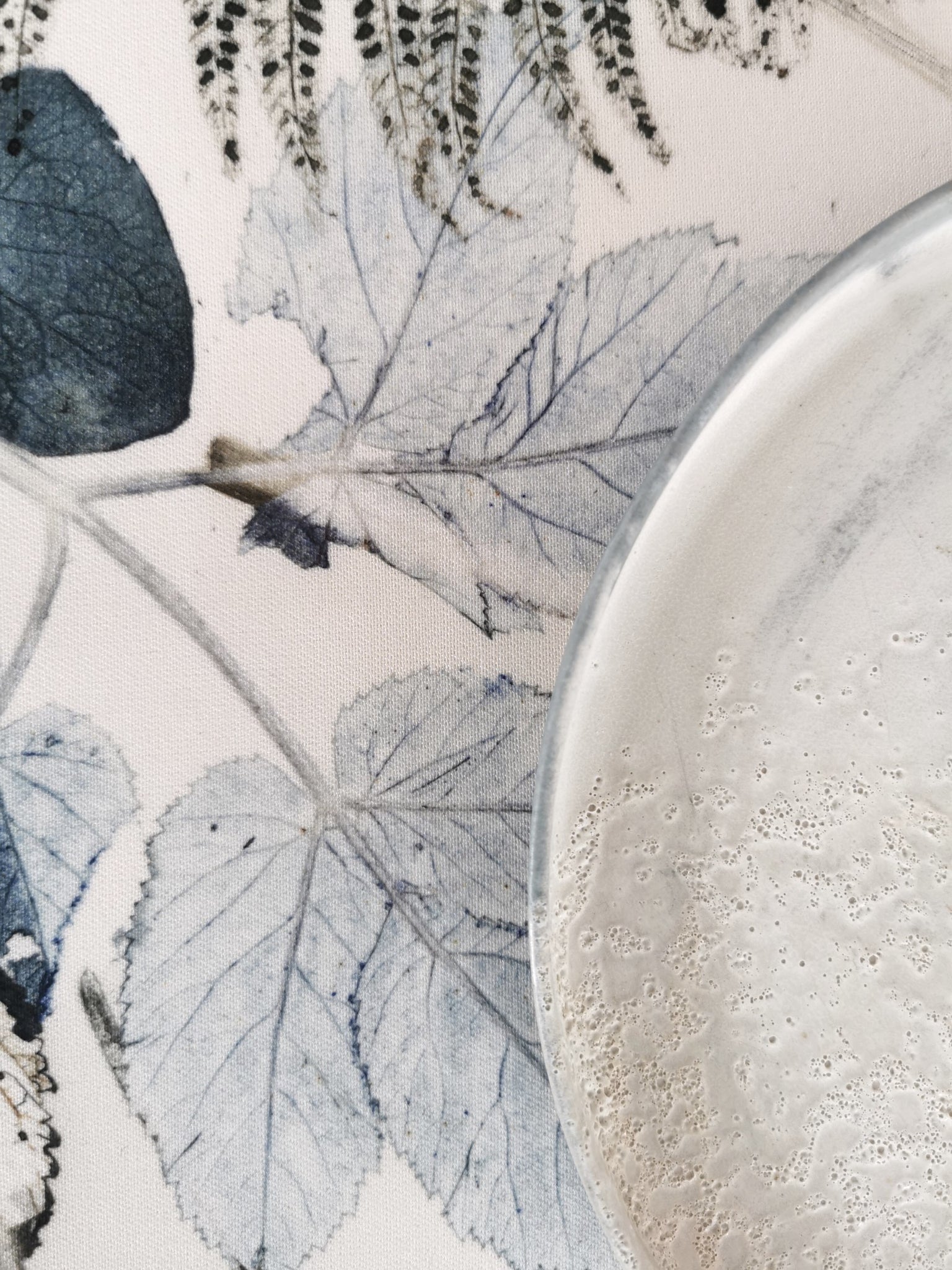 All table linens have an unique plant motif, which is handmade locally in the studio at Ulriksholm Slot near Kerteminde // Denmark; so there is exclusively one of each piece since the monoprint cannot be duplicated.
