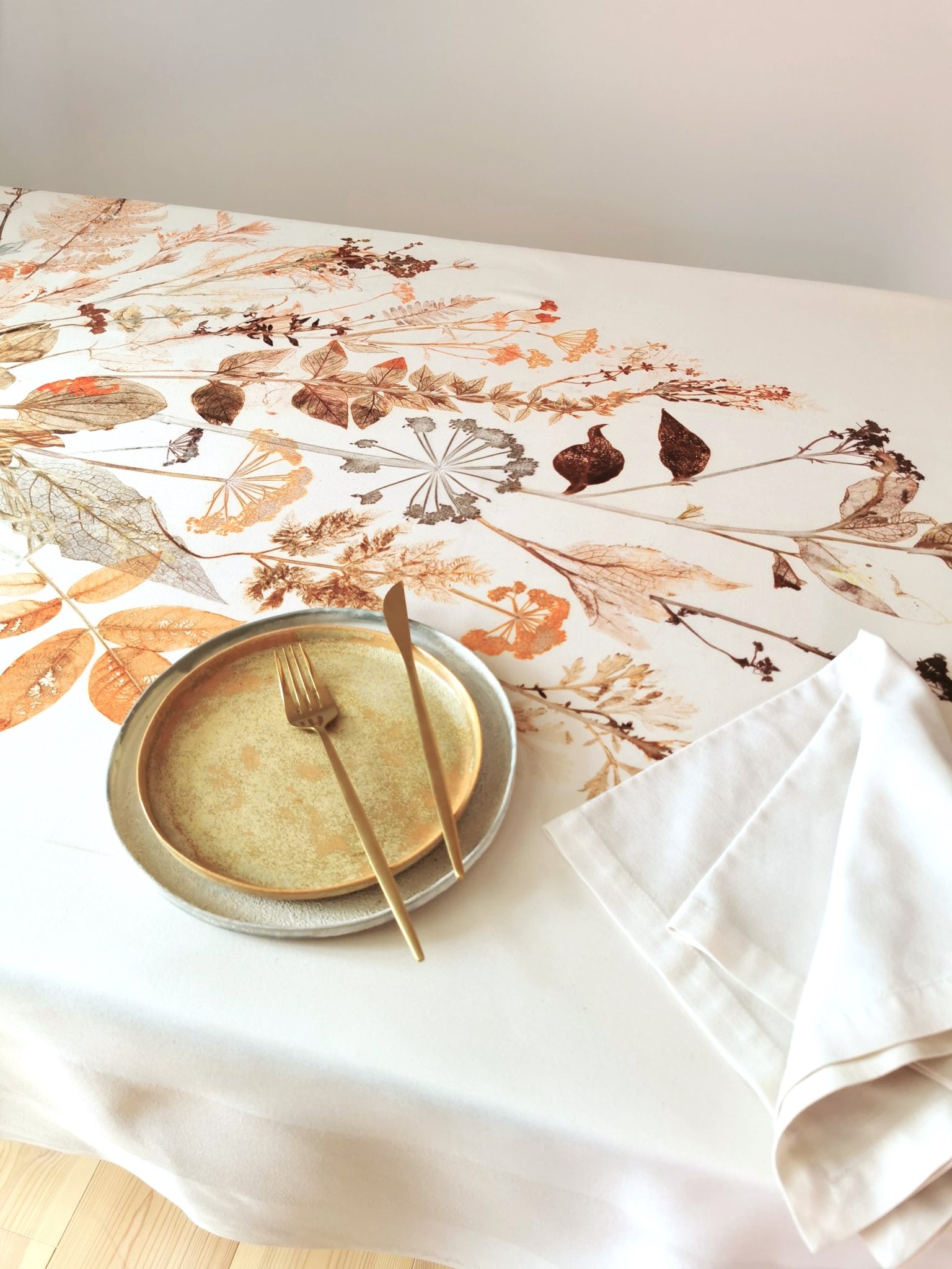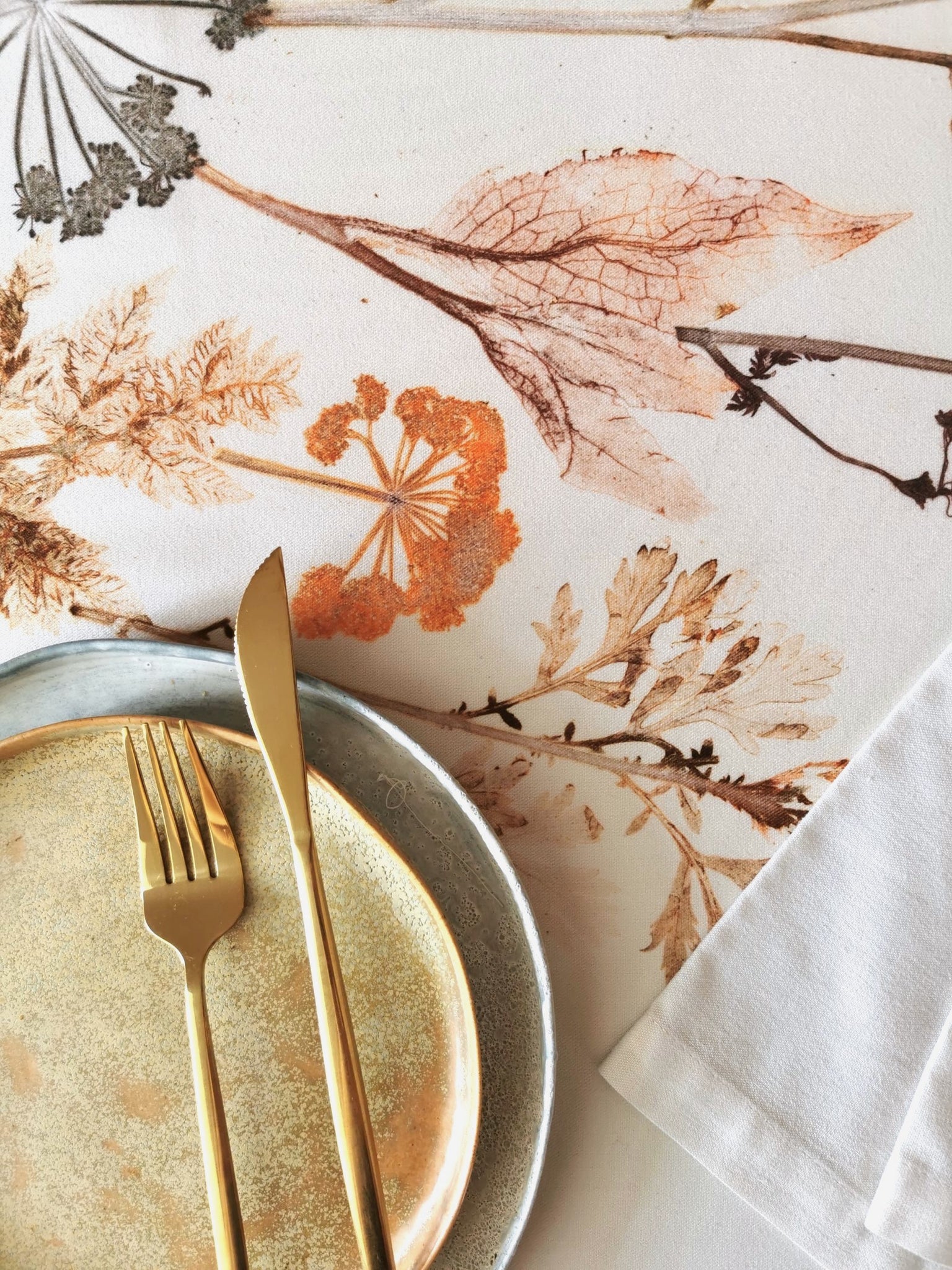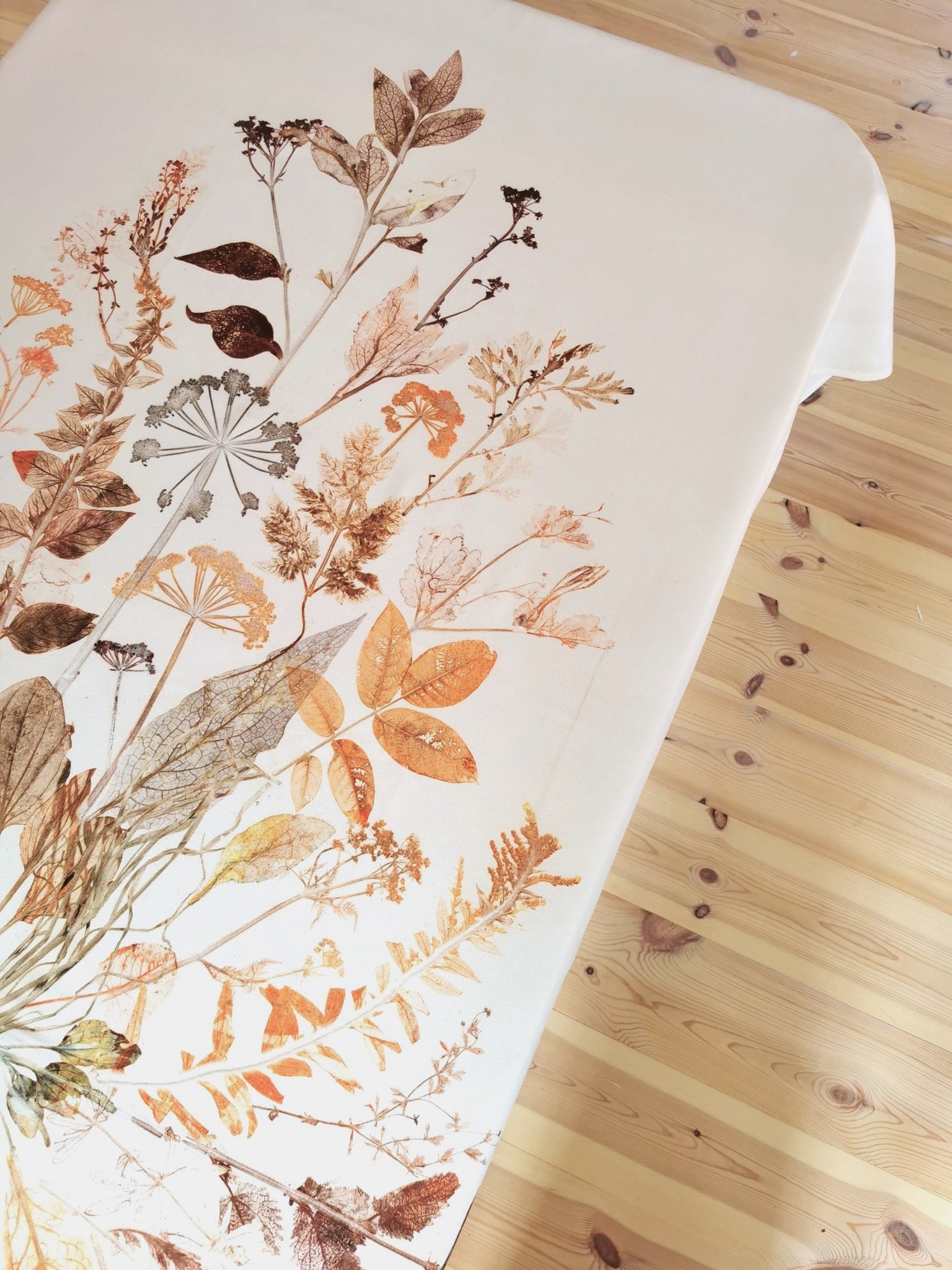 All table linens have an unique plant motif, which is handmade locally in the studio at Ulriksholm Slot near Kerteminde // Denmark; so there is exclusively one of each piece since the monoprint cannot be duplicated.
