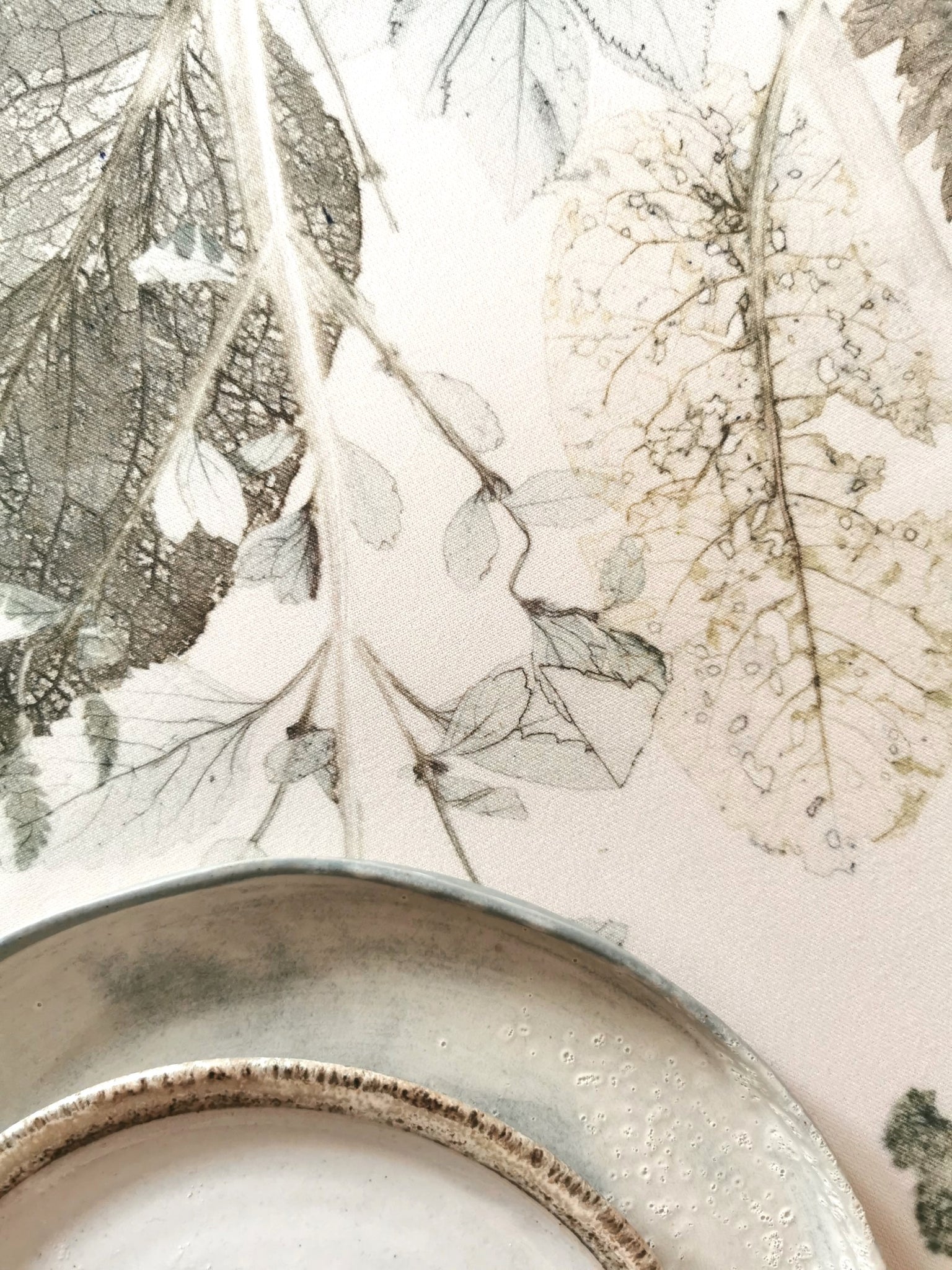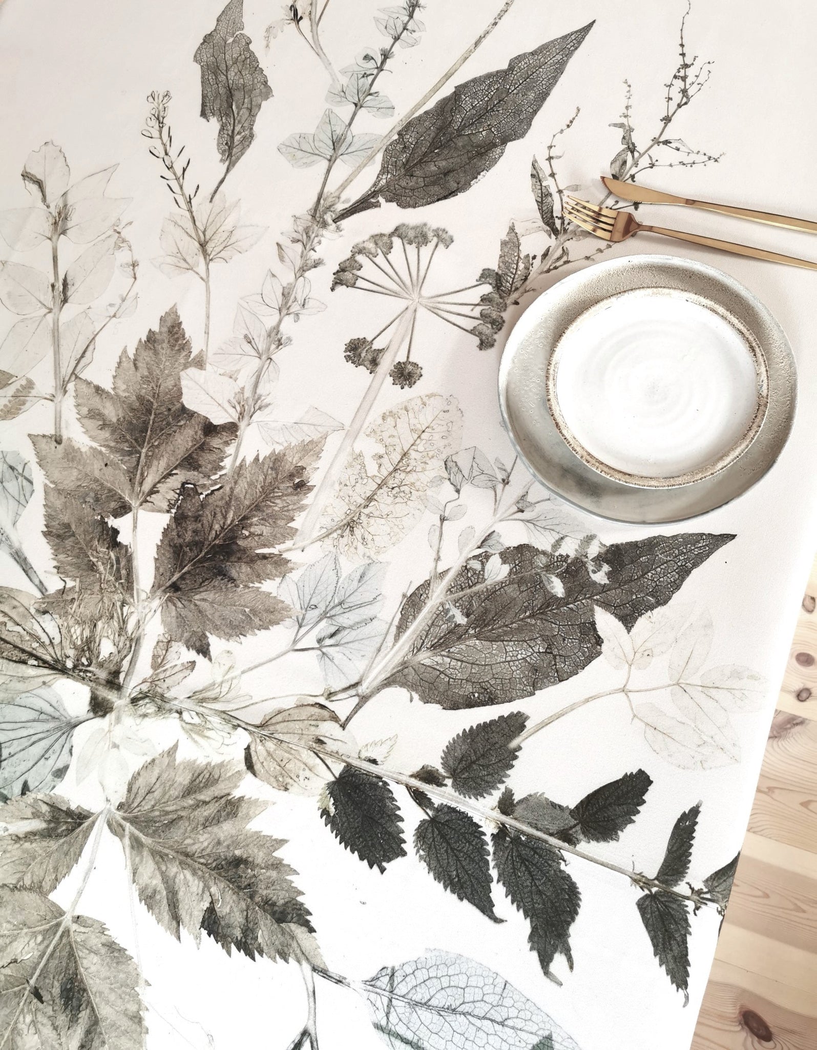 All table linens have an unique plant motif, which is handmade locally in the studio at Ulriksholm Slot near Kerteminde // Denmark; so there is exclusively one of each piece since the monoprint cannot be duplicated.