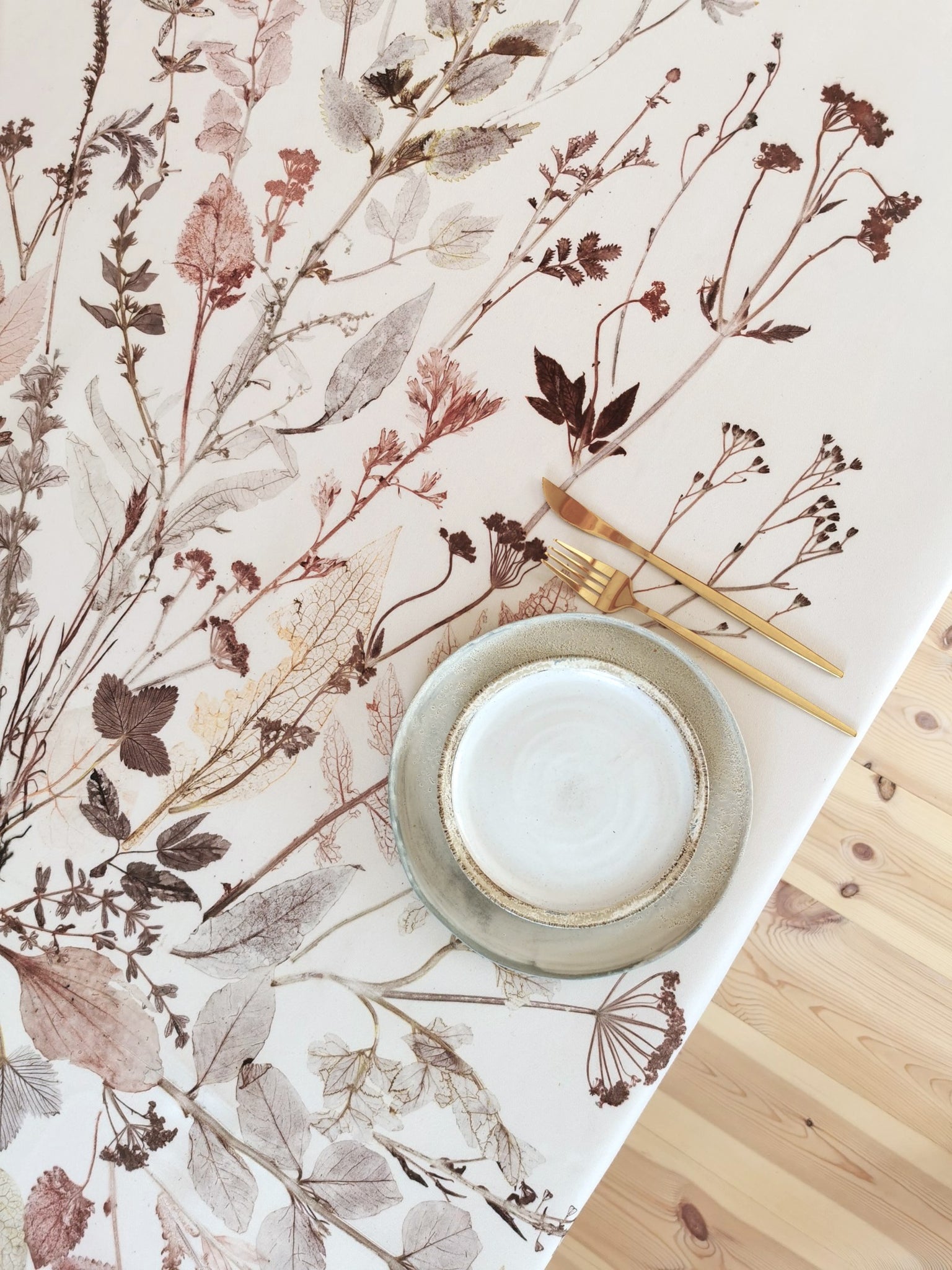 All table linens have an unique plant motif, which is handmade locally in the studio at Ulriksholm Slot near Kerteminde // Denmark; so there is exclusively one of each piece since the monoprint cannot be duplicated.