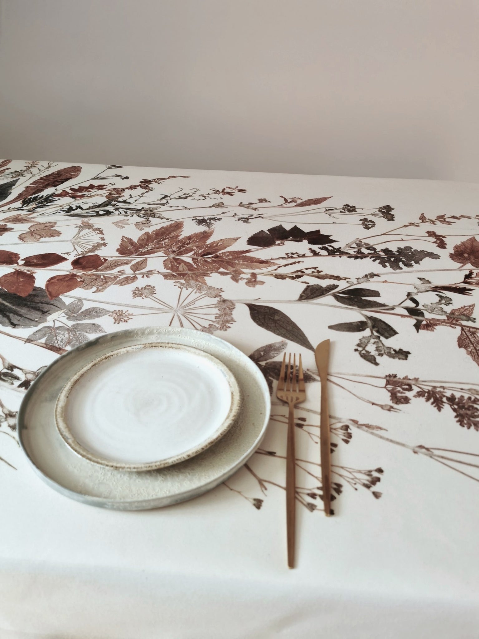 All table linens have an unique plant motif, which is handmade locally in the studio at Ulriksholm Slot near Kerteminde // Denmark; so there is exclusively one of each piece since the monoprint cannot be duplicated.