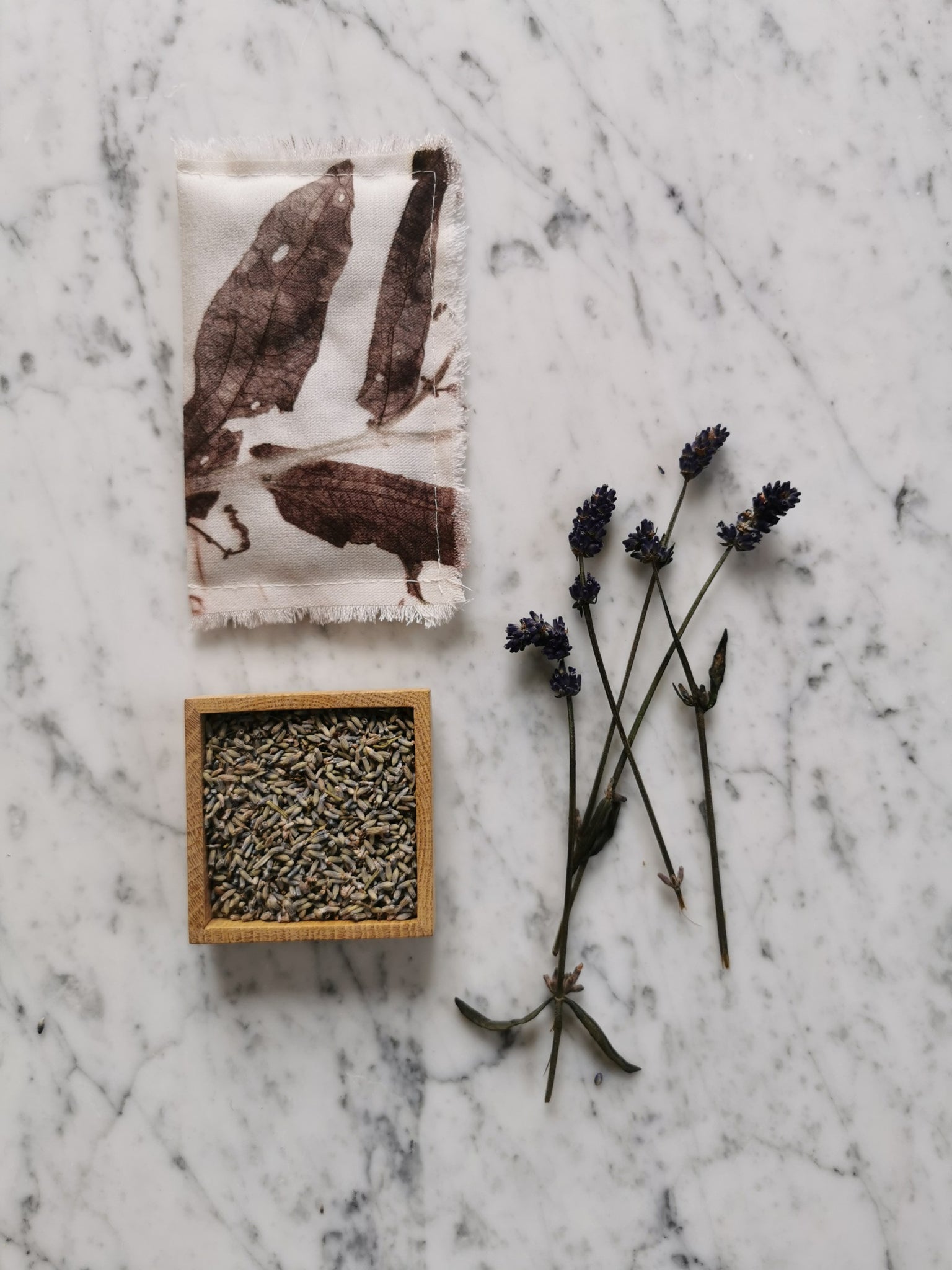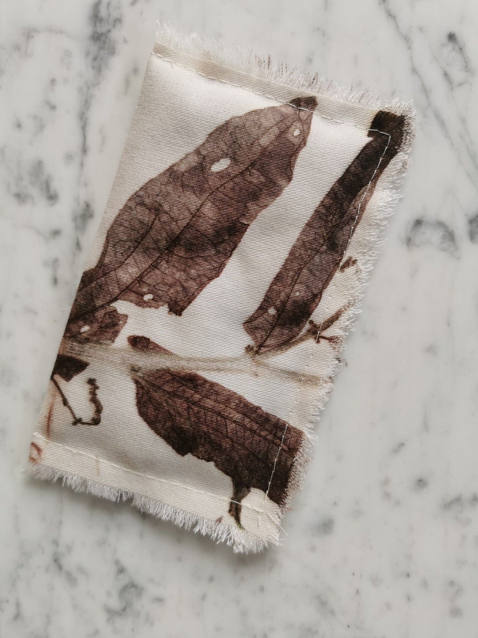 We work entirely with discarded textiles from the Danish industry, and by adding the plant print it is a way of covering traces of use, giving quality materials a second chance. The fabric used is discarded textile in collaboration with Vraa Dampvaskeri, that has a huge passion for re-using quality textiles at the end of their life, instead of letting them go to waste and be burned. Now they are transformed from trash into slow luxury interior design.